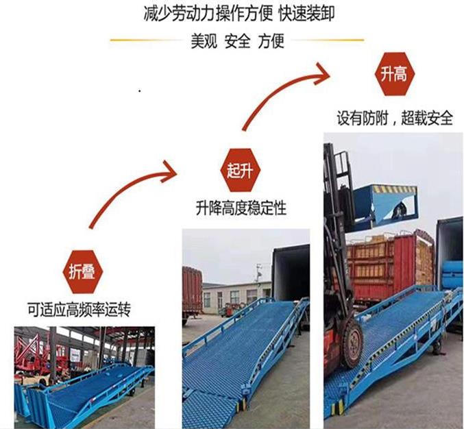 聊城登車橋-貨臺裝車升降平臺-電動液壓固定登車橋-集裝箱卸貨平臺-是實物快速裝卸的輔助設備,它的高度調節功能使用貨車與庫房的貨臺之間架起一座橋梁,叉車等搬駛及貨車內部進行貨物的批量裝卸,僅需單人作業,即可實物的快速裝卸。它使企業減少大量勞動,提高工作效率,獲取更大經濟效益。